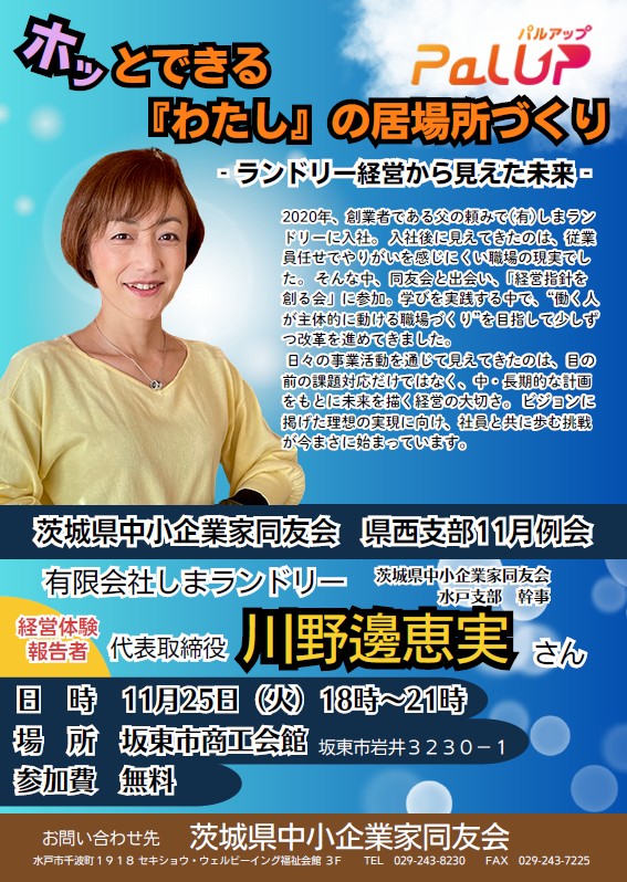 ■報告者:(有)しまランドリー 代表取締役 川野邊恵実さん