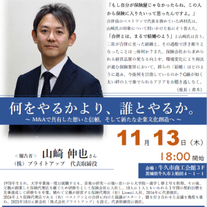 「なぜ、この事業をしているのか?」 「本当にこの道でいいのか?」をあらためて自分に返す機会になるはずです。仲間の挑戦や迷いに触れながら、自社の経営や自身のあり方を見つめなおす時間。未来への一歩を共に考える例会に、ぜひご参 […]