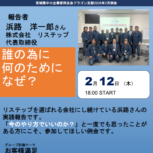 “腹落ち”か?“売り上げ”か? おおきや大木さんが悩んだ先に出した決断とは。 南西支部2月例会 なん